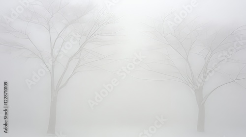 Obraz premium Foggy Winter Landscape with Two Bare Trees