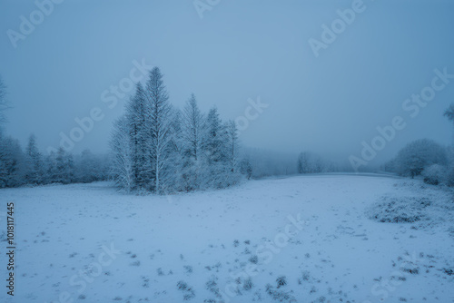 Obraz premium Foggy Winter Scene with Snow