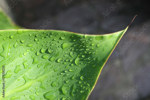 © saragone, Fototapeta premium foglia macro con gocce di rugiada