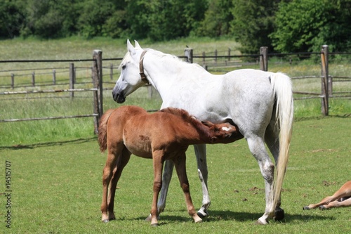 © Mumpitz, Fototapeta premium Fohlen mit Mutter auf der Weide