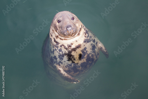 © porqueno, Naklejka premium Foka cętkowana unosząca się na oceanie, patrząc w kamerę