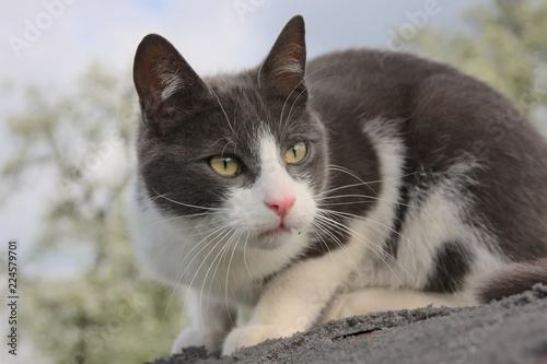 © sunakri, Obraz premium Fokussierte Katze auf der Jagd