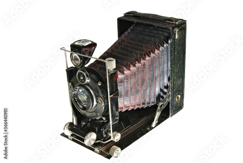 © yrafoto, Fototapeta premium Foldable photo camera with leather fur. Isolated on white.