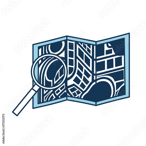 © Gstudio, Obraz premium folded map navigation with magnifier search icon