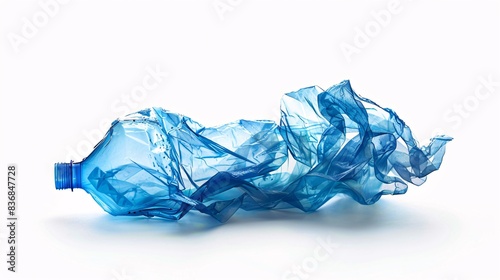 Fototapeta premium Folded single-use plastic bottle on a white background.
