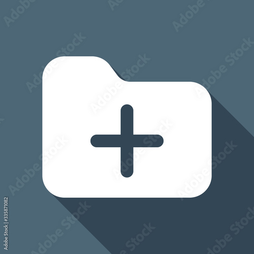 Fototapeta premium Folder with plus mark, business icon. White flat icon with long