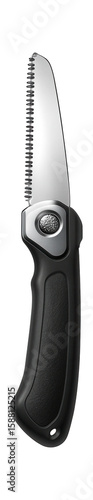 © OMD, Obraz premium Folding pocket saw with a retractable blade and a safety lock for hiking trips.