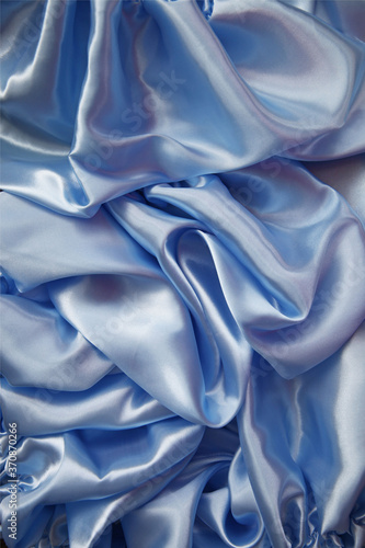© Tatyana, Fototapeta premium folds of silk airy light blue color, top view