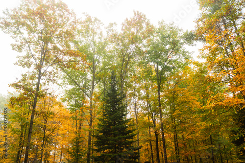 Obraz premium Foliage and leaves changing in the fall. New Hampshire forest background