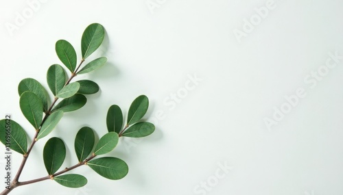 Naklejka premium Foliage of a eucalyptus tree against a white background with subtle texture, fresh, , botany