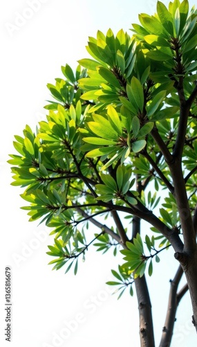 © Anulak, Fototapeta premium Foliage of eucalyptus trees against white background, verdant, tree, eucalyptus