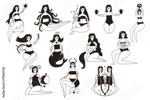 © Anna Drozdova, Naklejka premium Folk women zodiac sign set illustration