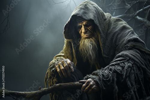 Fototapeta premium Folklore of Russian and Finnish fairy tales. Baba Yaga and the Leshiy. Children horror stories. The inhabitants of the forest. Forest Dwellers. legends, scare stories for kids. Lord of the Forest.