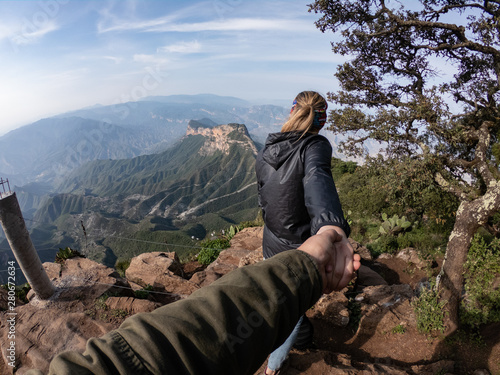 Naklejka premium follow me to The Famous Viewpoint of Cuatro Palos in Queretaro's Sierra