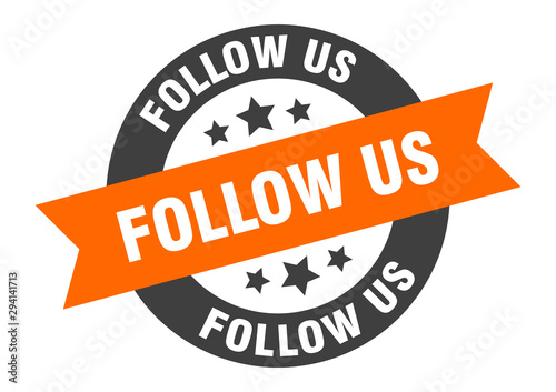Fototapeta premium follow us sign. follow us orange-black round ribbon sticker