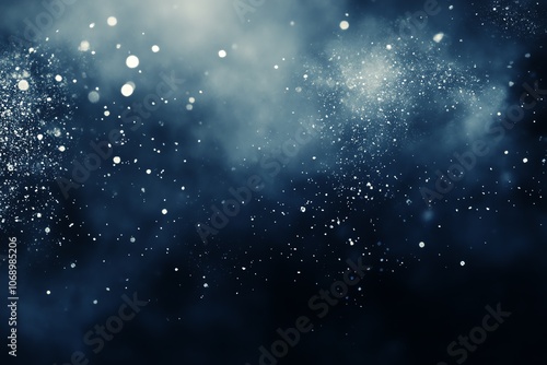 © JBMotillon, Fototapeta premium Fond bleu marine profond avec flocons d'argent et brume blanche éclatante..
