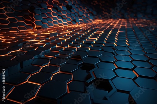 © ramoncin1978, Obraz premium Fondo futurista, abstracto de hexagonos, oscuro. AI generative