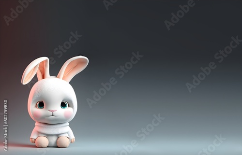 © Pligo, Obraz premium Fondo oscuro con conejito tierno 3d render realista. Generado con tecnología IA