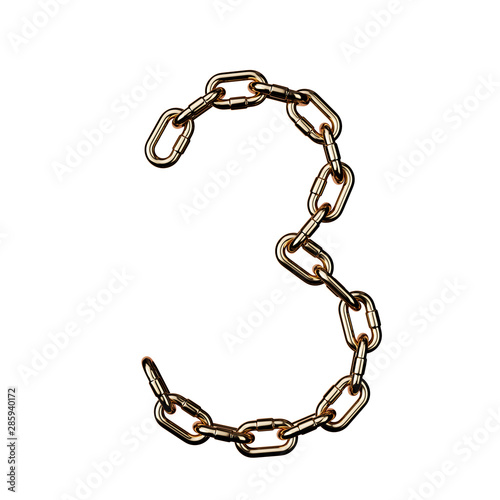 © Denys Rudyi, Fototapeta premium Font digit three 3 chain