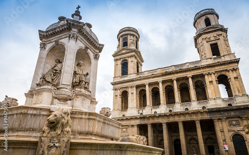 Fototapeta premium Fontaine et l'Église Saint Sulpice