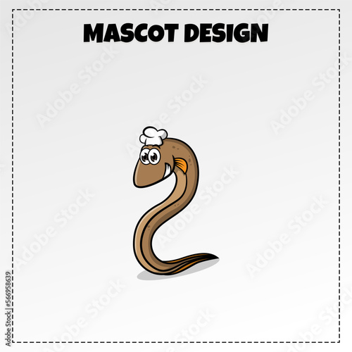 © Sembilan Galeri, Fototapeta premium Food logo fried eel mascot illustration vector design