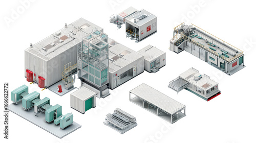 Naklejka premium Food packaging plant layout with cold storage and packing zones top view isolated on a Transparent background, PNG file.