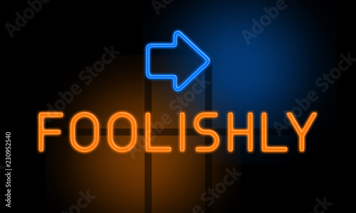 © Hepta, Fototapeta premium Foolishly - orange glowing text with an arrow on dark background