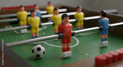 Fototapeta premium Foosball Table with Red and Yellow Players