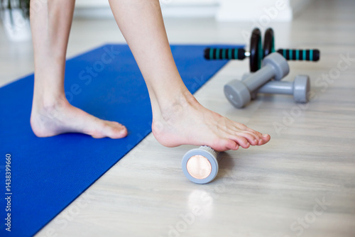 © Ksenia144, Fototapeta premium Foot Training on Massage Roller, Sports Concept