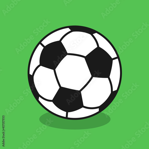 Obraz premium Football and soccer ball. Vector illustration on plain green background.