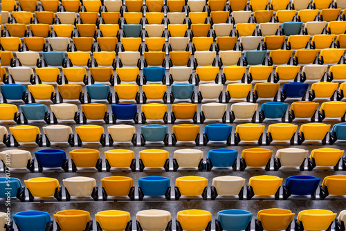 Fototapeta premium Football and soccer stadium empty tribune colorful seats