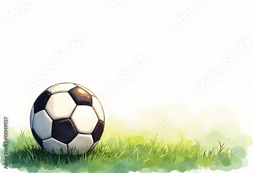 Fototapeta premium Football ball composition with soccer ball lying on the grass on the football...