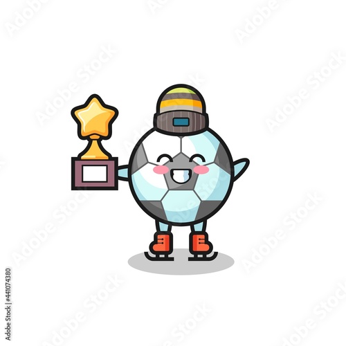 Fototapeta premium football cartoon as an ice skating player hold winner trophy