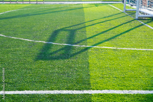 Obraz premium Football field grass with chalk line, sport background