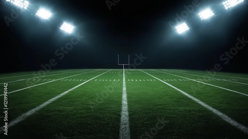 © Henry, Naklejka premium Football field illuminated by stadium lights with copy space on dark background
