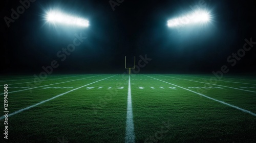 © Henry, Naklejka premium Football field illuminated by stadium lights with copy space on dark background