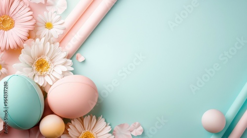 © Sangsung, Fototapeta premium Football field with pastel colors and flower patterns, spring sports revival theme