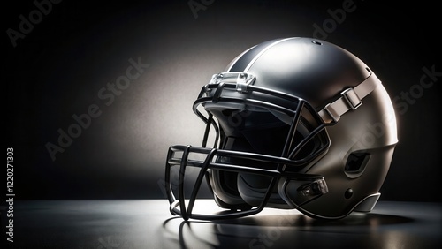 Fototapeta premium Football helmet placed on a black background with a subtle gradient effect