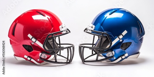 © Iband, Fototapeta premium Football Helmets Facing Off on White Background