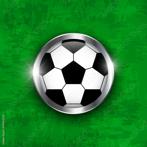 Obraz premium Football icon . Soccer ball with glass covered and metal edge on green color...