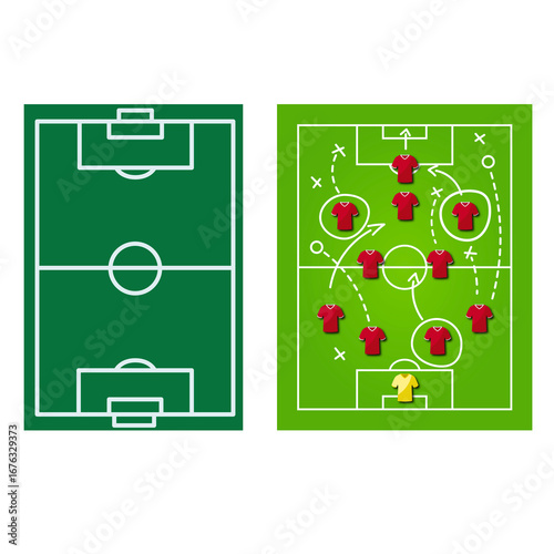 Obraz premium Football Icons – Soccer Field Layout and Tactical Strategy Board Illustration