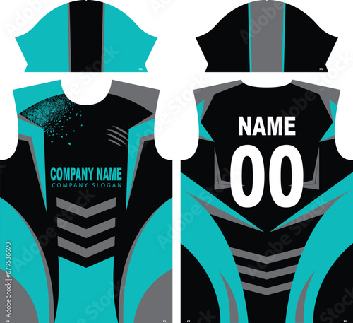 © Sheikh, Fototapeta premium Football Jersey Design, Black Light blue