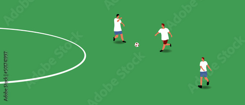 Fototapeta premium Football on field, flat vector stock illustration with running football...