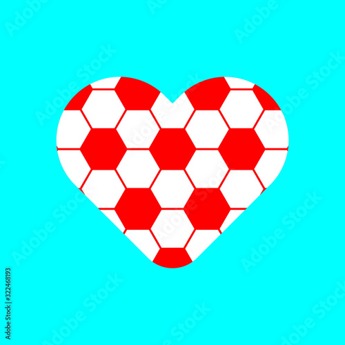 Fototapeta premium Football pattern in heart sign vector isolated on blue background.