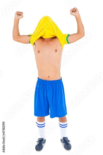 © WavebreakMediaMicro, Fototapeta premium Football player in yellow celebrating a victory