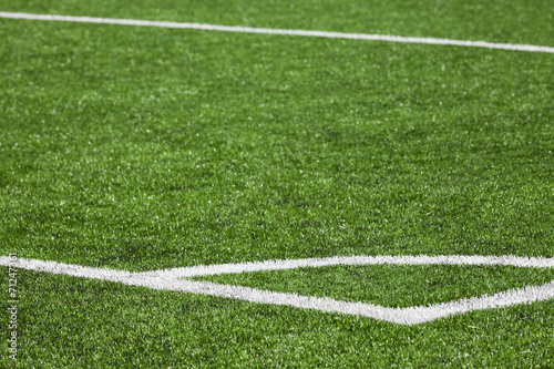 © evannovostro, Obraz premium Football playing field background with green grass and white cor