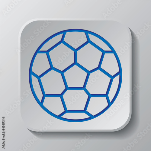 Fototapeta premium Football simple icon vector. Flat design. Paper cut design. Cutted blue symbol with shadow. Gray badge button, gray background