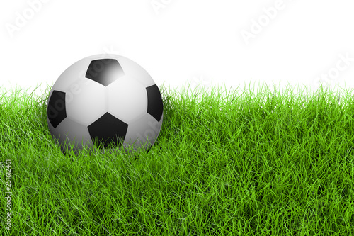 © GeniusMinus, Obraz premium Football Soccer Ball on Green Grass Field