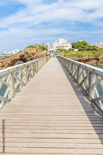 © JeanLuc Ichard, Fototapeta premium Footbridge of the Rocher de la Vierge rock in Biarritz, France
