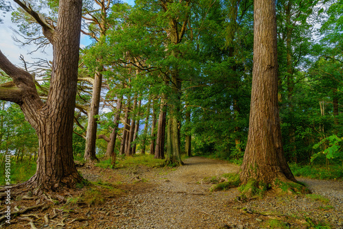 Naklejka premium Footpath among trees in Calfclose Bay, the Lake District